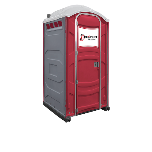 This ventilated, roomy porta potty has anti-slip flooring, occupancy signal latch, holds four toilet roll holders, sanitary seat deck and floor design, and a translucent roof for better lighting.